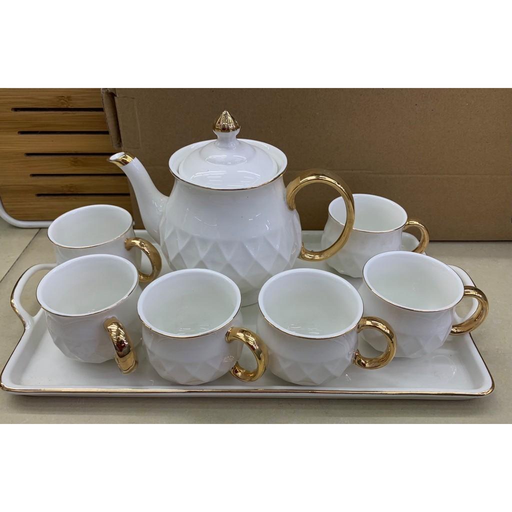 Bộ ấm trà men gấm vàng,gồm: 2 ấm trà 6 chén trà 7 lót đĩa Dòng men mới trên thị trường đang được nhiều KH lựa chọn