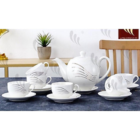 Một bộ sản phẩm bao gồm: 01 ấm, 01 đĩa ấm, 06 chén và 06 đĩa chén. Bộ sản phẩm được làm từ chất liệu gốm cao cấp, bảo đảm an toàn vệ sinh