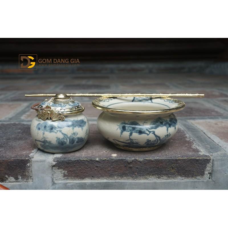 BỘ TRÀ MEN RẠN LÕM VUNG BỌC ĐỒNG BÁT TRÀNG CAO CẤP