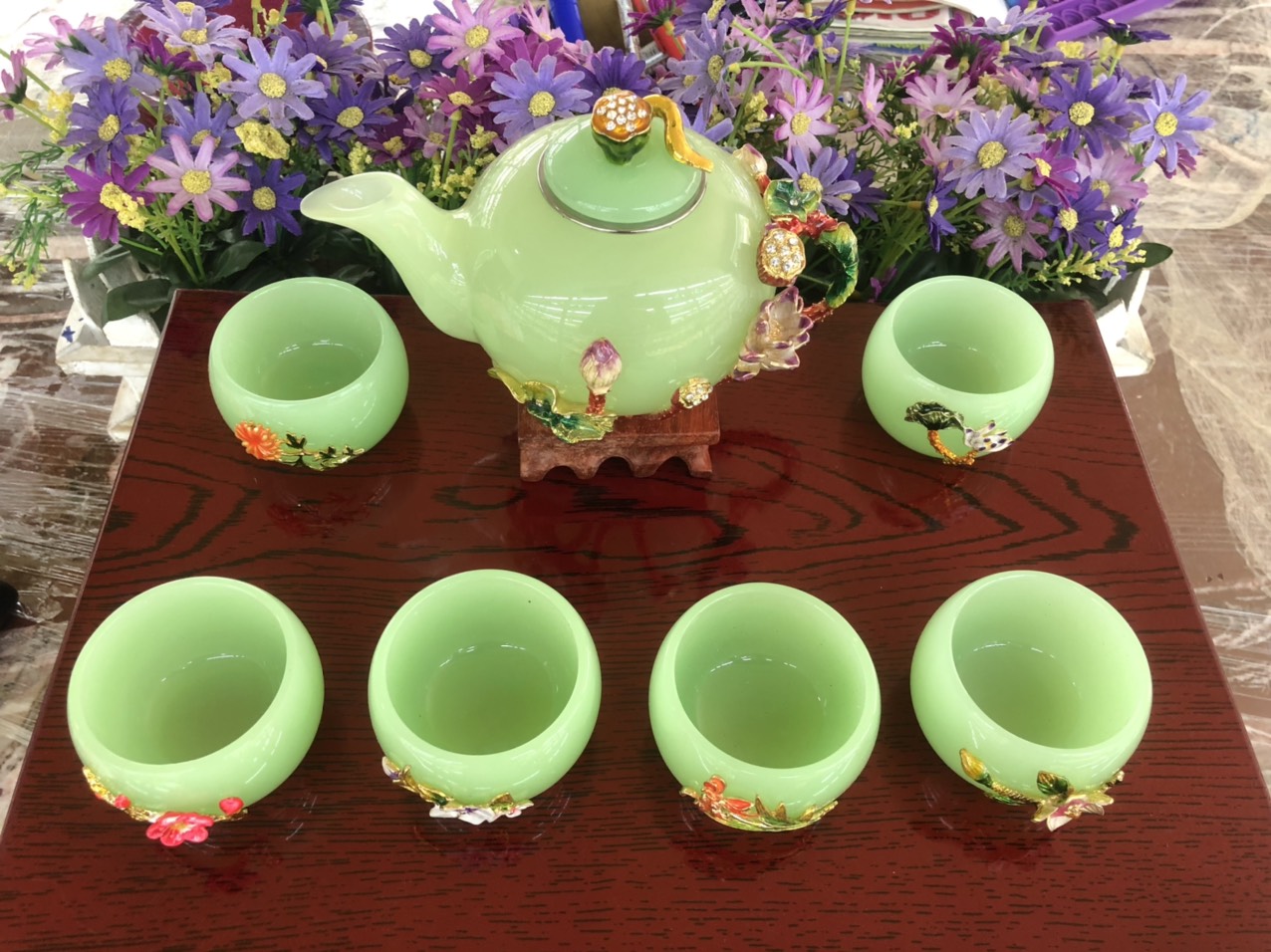 Chất liệu: Đá ngọc Serpentine Bộ sản phẩm gồm: 7 dĩa, 6 ly và 1 ấm trà Dùng để uống trà hoặc làm quà biếu tặ