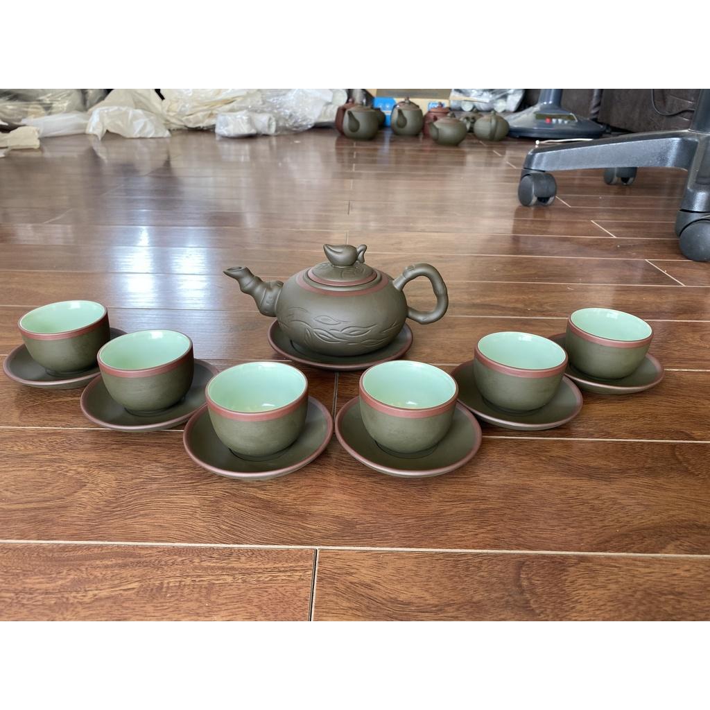 - Bộ ấm chén men rạn chân chim - Gốm sứ Bát Tràng - Dung tích 350ml - 1 ấm 6 chén 7 đĩa kê - Giá 350k