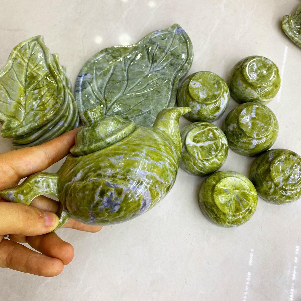 Bộ ấm trà bằng Ngọc Serpentine | 0918979468 - Đá Quý Trungroup