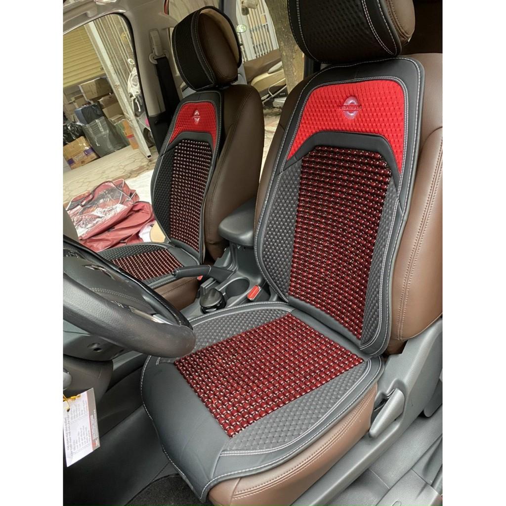 Bộ áo ghế ô tô lót liền hạt gỗ da cao cấp phủ 1 ghế trước, có đan hạt gỗ chống nóng, massage lưng