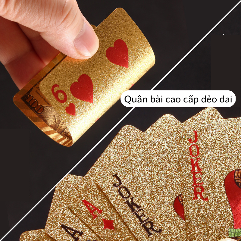 ✨Bộ Bài Tây Poker Mạ Si Vàng Cao Cấp - Tú Lơ Khơ Phủ Nhũ Vàng Chính Hãng Amalife – Bộ 54 Lá Bài Tây Pocker Nhựa Dẻo Chống Thấm Nước Chống Gãy