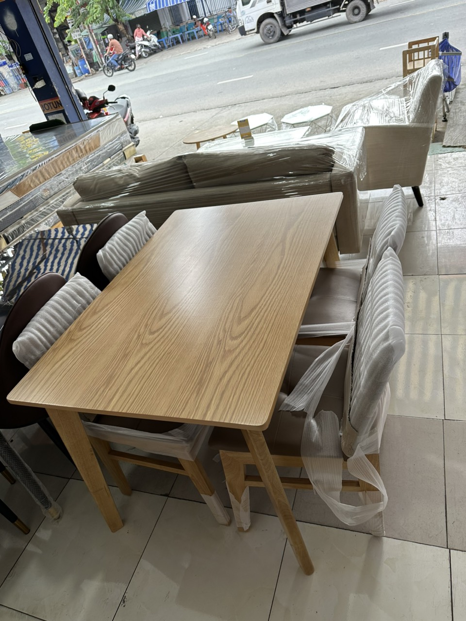 *** Quý khách hàng vui lòng chọn sản phẩm nhà bán JUNO SOFA để nhận được sản phẩm đúng với chất lượng *** Kích thước:1.2m x 80cm (bàn) Số ghế: 4 ghế ( có thể đặt