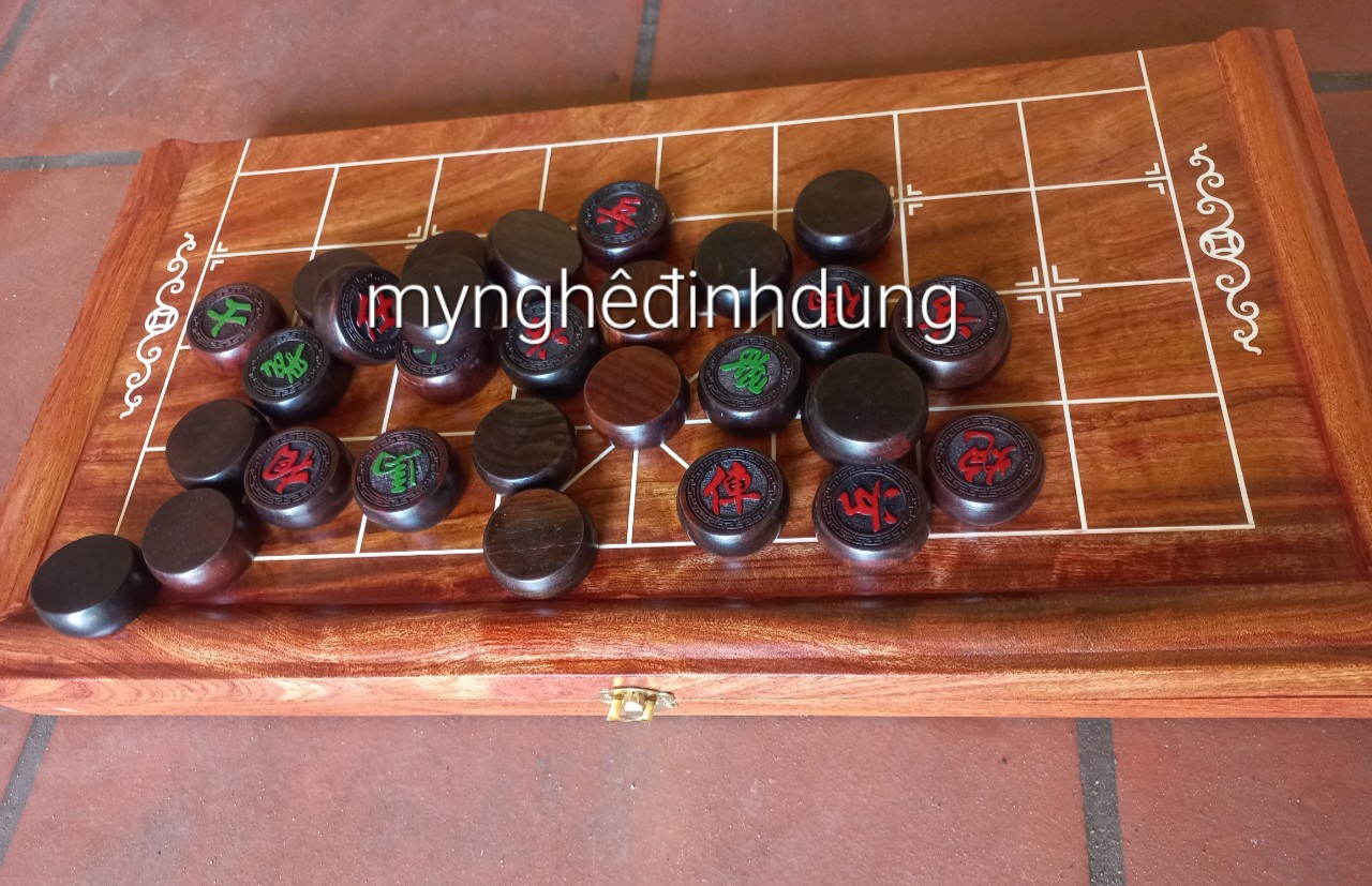 _ Bộ bàn cờ tướng +quân cờ được làm bằng chất liệu gỗ trắc đỏ đen tự nhiên 100% _ Kt bàn cờ 52×50 dầy 3cm _ Kt quân cờ 4.0×1.5cm _ Bộ bàn cờ