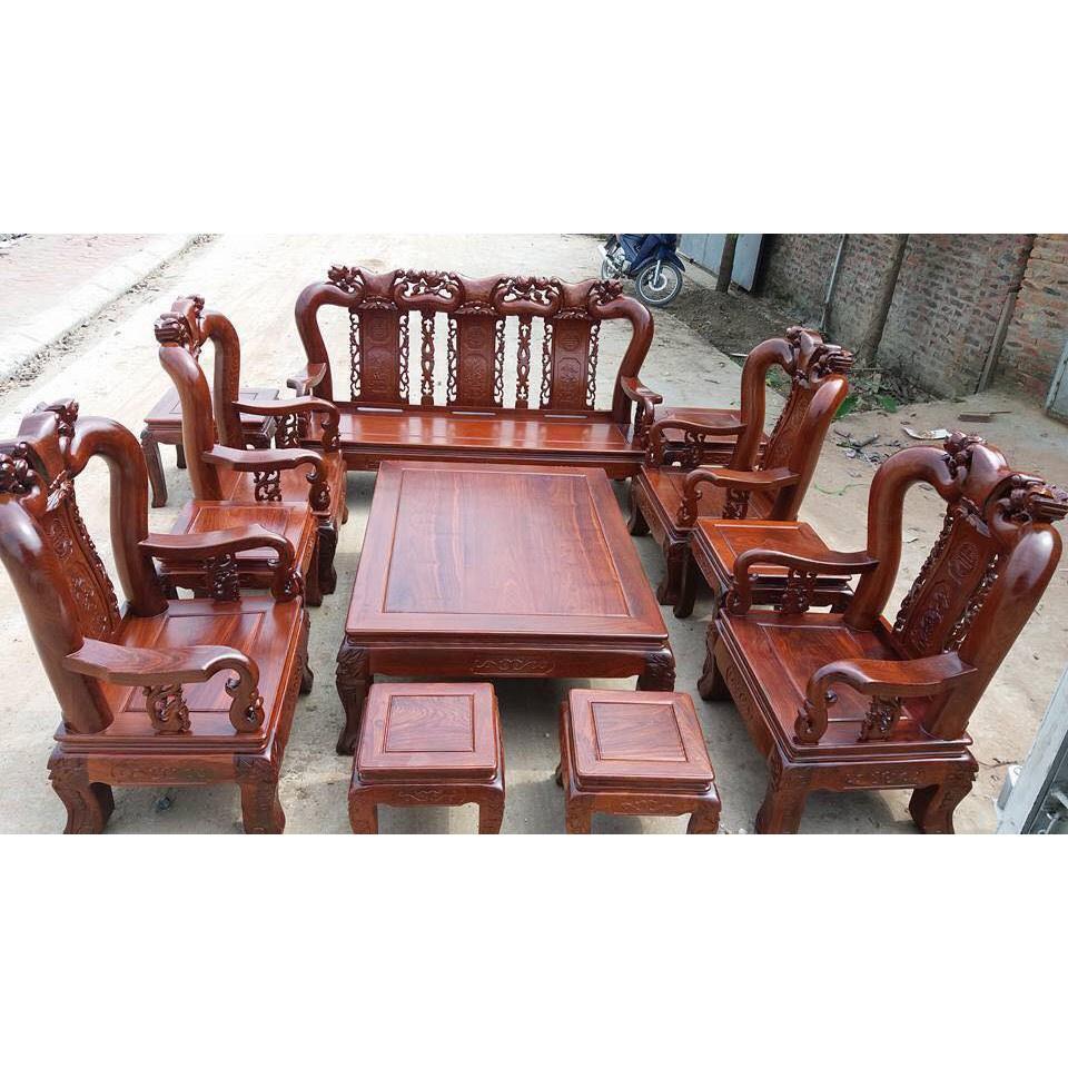 Bộ bàn ghế phòng khách quốc đào tay 14 Gỗ Hương Vân - Đồ Gỗ Thu Tú