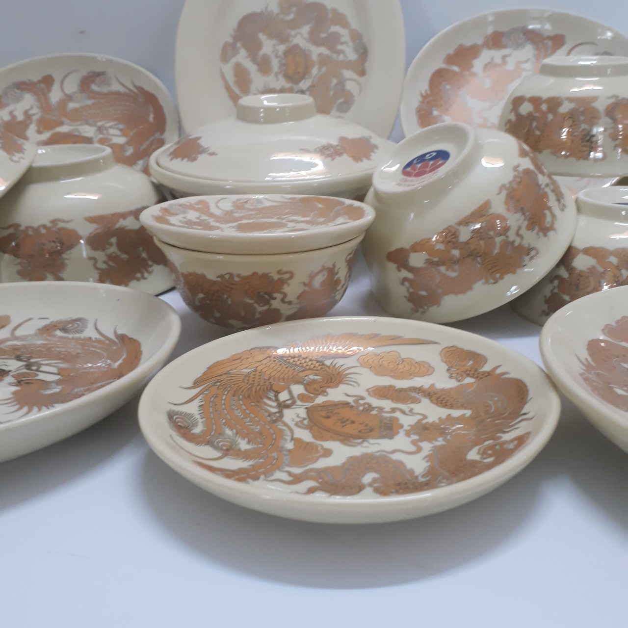 Mua tại TiktokBỘ BÁT ĐĨA THỜ CÚNG ĐẦY ĐỦ GỒM CÁC CHI TIẾT SAU: 6 bát cơm nhỏ rộng 10 cm, cao 4 cm kèm 1 bát nước chấm nhỏ hơn chút xíu. men mầu Vàng Họa tiết của bộ này có viền kim loại ở himhf tượng Rồng Phượng như sau 6 đĩa tròn có kính thước to nhỏ khác nhau và 1 đĩa bầu dục. 2 bát tô nhỏ đựng canh kèm 1 âu đựng cơm có nắp đậy xinh xắn. Tất cả cho vào 1 hộp giấy sang gọn chắc chắn có ghi nơi sản xuất và nguồn gốc xuất sứ rõ ràng. Shop tặng thêm 1 bộ đũa thờ gỗ họa tiết Song Long và bộ chén đĩa thờ cúng Bộ bátđĩa thờ cúng bằng sứ men lam hoa tiết Rồng Phượng chi tiết, tinh xảo và thê lớp viền kim loại để thêm phần linh thiêng. Đây là vật dụngvô cùng cần thiết khi dâng cúng tổ tiên, thần linh trong các ngày lễ tết giỗ chạp.