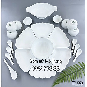 Bộ bát đĩa gốm sứ Bát Tràng cao cấp men trắng 23 chi tiết như hình