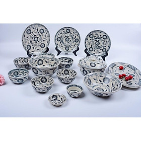 Bộ đồ ăn Bát Tràng - Sản phẩm bao gồm: 6 bát cơm, 1 mắm, 1 muối, 1 tô 16, 1 tô 18, 1 đĩa tròn 14, 1 đĩa tròn 16, 1 đĩa tròn 18,