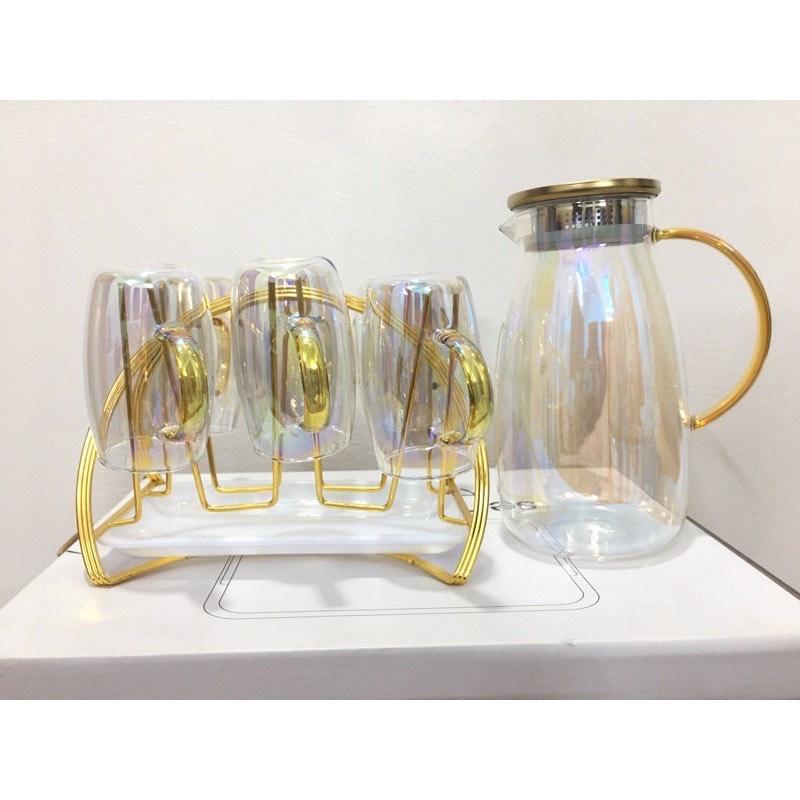 Bộ bình nước 6 ly chịu nhiệt kèm giá úp và khay sứ dùng để pha trà, pha lá vối, đun nước, pha nấm linh chi Đây là bộ sản phẩm gia dụng hữu ích,