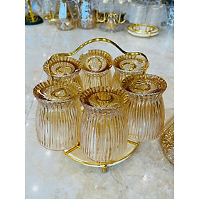 Bộ khay bình nước 6 cốc thuỷ tinh cao cấp