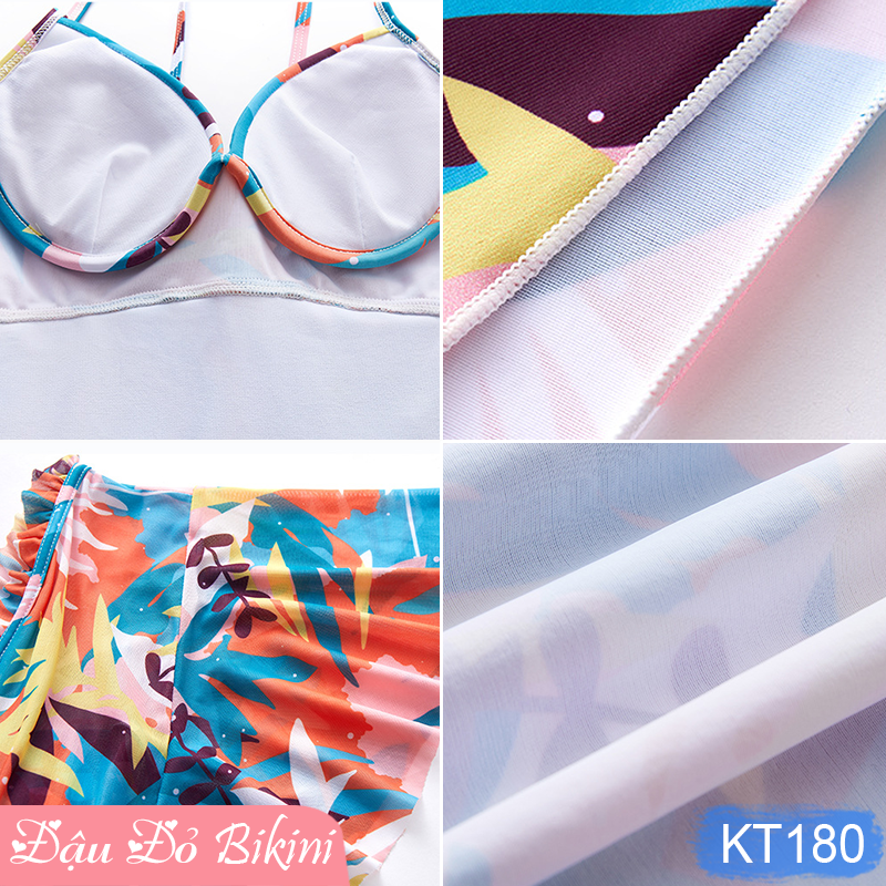 Bikini, đồ bơi nữ đi biển set 3 món hai mảnh họa tiết hoa kèm khăn quấn