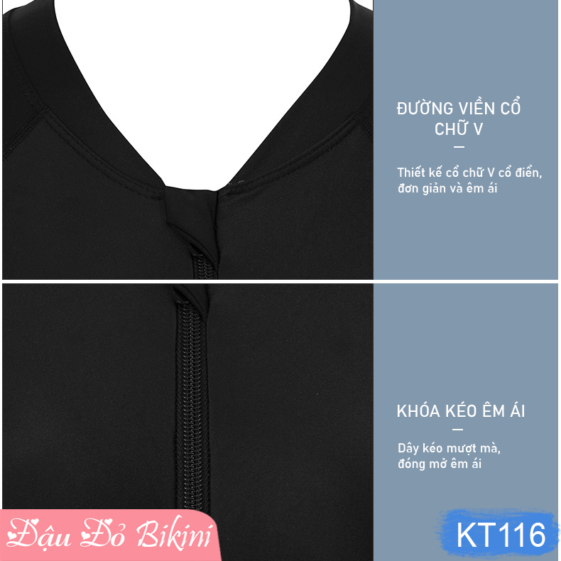Tự tin khoe trọn vẻ đẹp năng động, trẻ trung và khỏe khoắn trong những chuyến du lịch hè này với Bộ Đồ Bơi Liền Thân Dài Tay Quần Đùi KT901 của Đậu Đỏ Bikini.