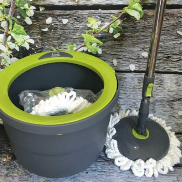 Bộ cây lau nhà xoay tay 360 độ MOP- L003 Màu sắc: Xanh lá cây Chất liệu : Nhựa, inox, sợi bông Kích thước: 49,5 x 31,5 x 30 (cm) -Lồng vắt bằng inox. Độ