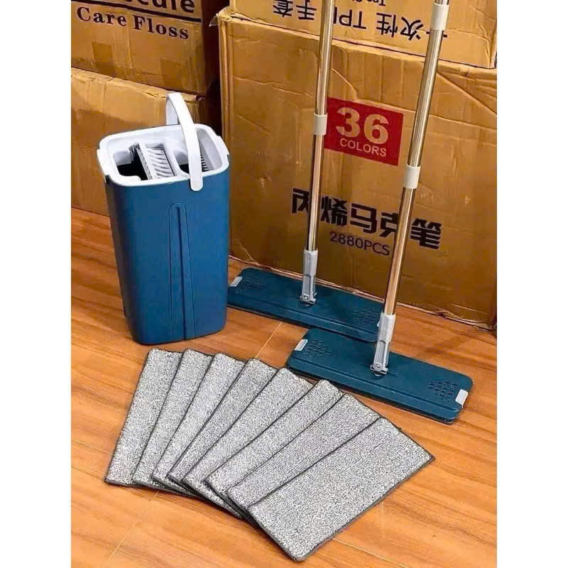 Bộ Cây Lau Nhà tự vắt (1 Thùng + 2 Cây Lau + 8 Bông Lau), Chổi Lau Nhà Tự Vắt Thông Minh Đầu Xoay 360 Độ tiện lợi Bộ cây lau nhà tự vắt