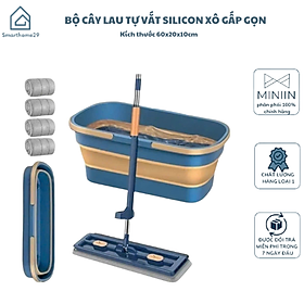 Bộ Cây Lau Tự Vắt Nhà Kèm Xô Gấp Gọn Silicon Thông Minh, Tặng Kèm 4 Bông Lau Mẫu Mới 2025