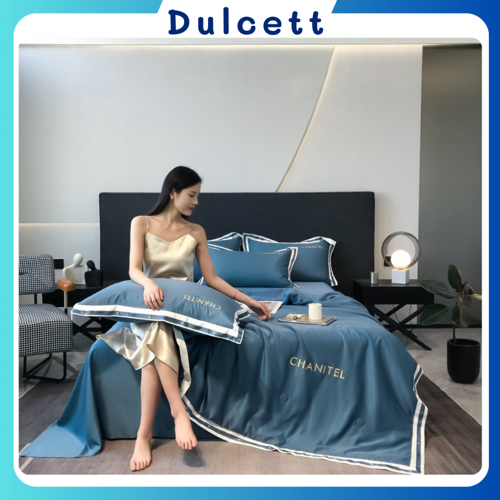 Bộ chăn ga Phi Lụa chăn hè Chanitel - Set 4 món nhập khẩu cao cấp Sản phẩm gồm: 1 CHĂN HÈ CHẦN BÔNG 1 GA BỌC NỆM 2 VỎ GỐI NẰM Các bạn muốn