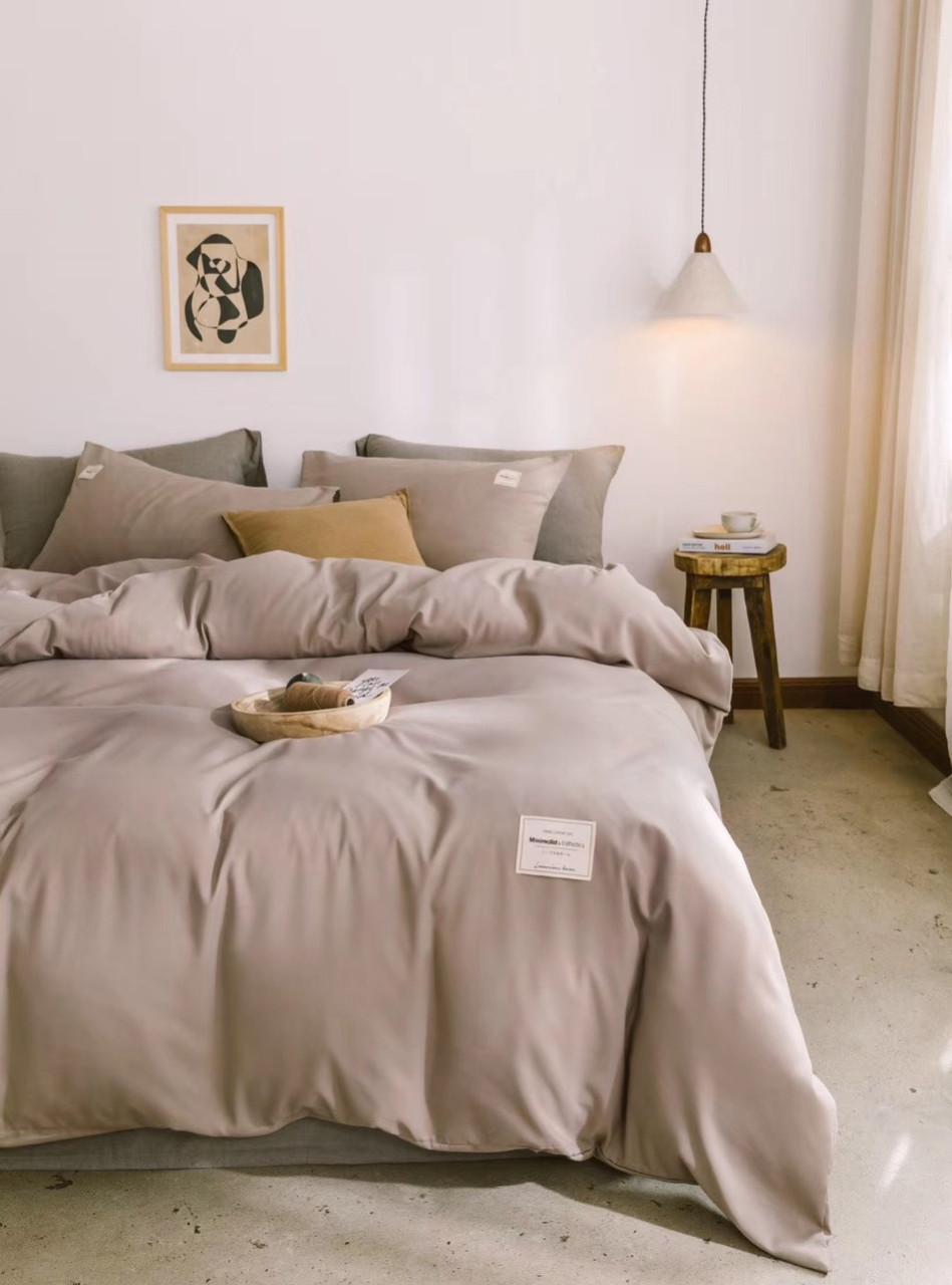 ✨Bộ Chăn Ga Gối Cotton Tici Đơn Sắc LIDACO - Màu Be