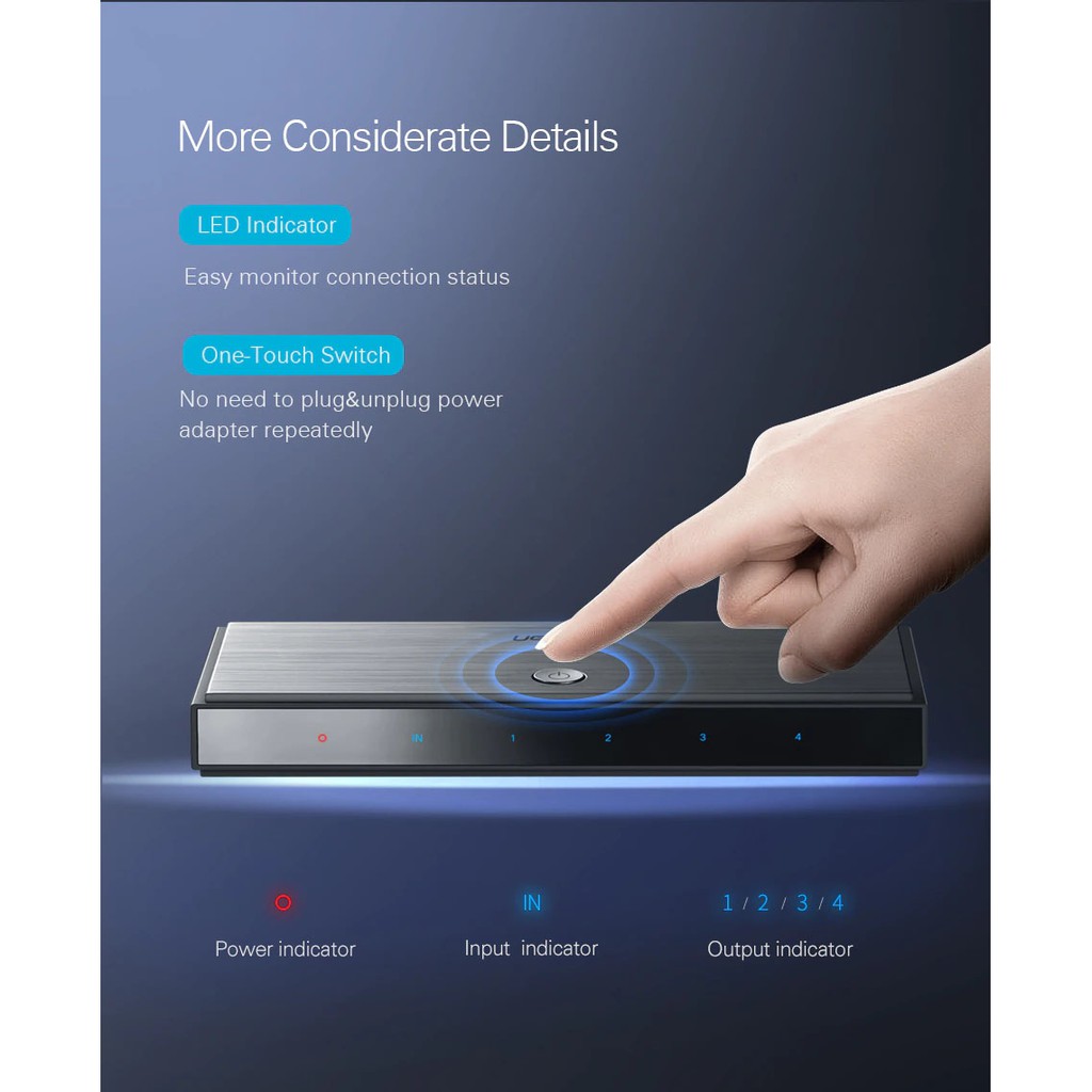 - Bộ Chia HDMI Ugreen Ra 4 Cổng HDMI 40202 được thiết kế vỏ kim loại cao cấp, cảm giác cầm trên tay chắc chắn. - Ugreen 40202 chia từ 1 cổng HDMI ra 4