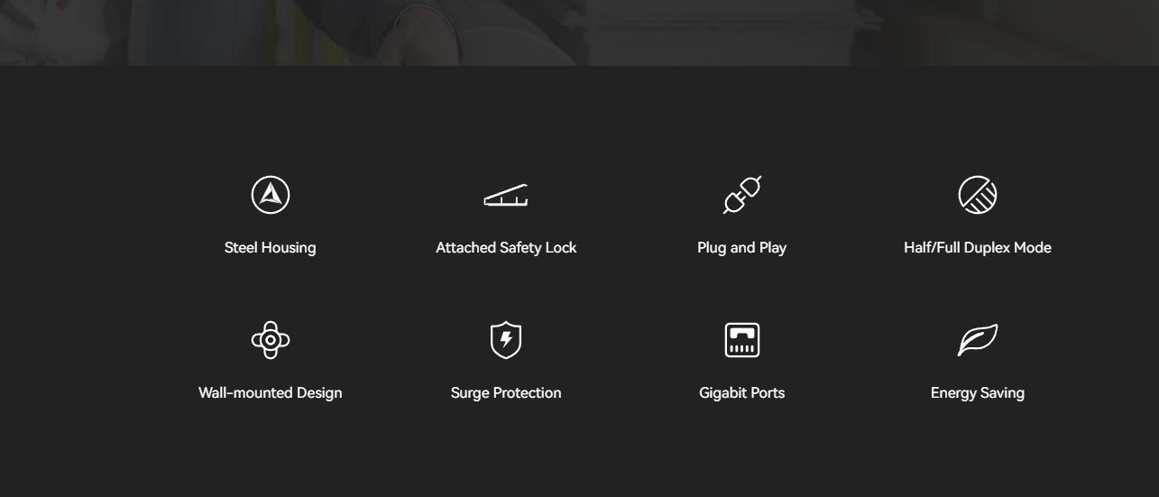 MÔ TẢ SẢN PHẨM – 8 × Cổng PoE 10/100M, 2 × Cổng Gigabit RJ45 – Tổng công suất PoE 60W – Hỗ trợ 802.1Q VLAN – Hỗ trợ PoE watchdog để phát hiện và