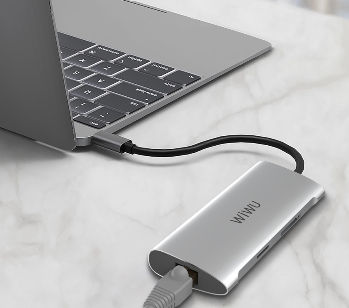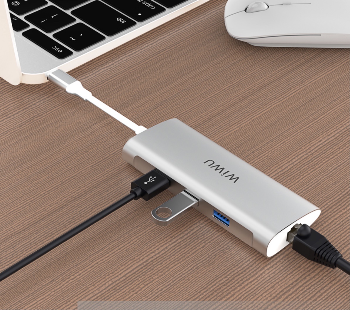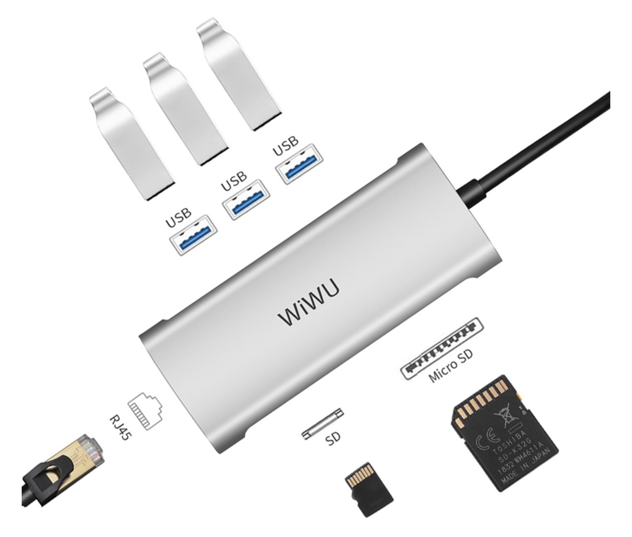 Hub #Wiwu Alpha 7 in 1 USB - C Hub #A731HC 3*USB3.0+ SD+TF+4K HDMI+100W PD Thương hiệu: #Wiwu Chất liệu: Hợp kim nhôm Thông số kỹ thuật: 3 cổng USB 3.0+1, 1 cổng TF, 1 cổng HDMI, PD, 1 cổng SD Đầu ra HDMI 4K: phản chiếu hoặc mở rộng màn hình của bạn với cổng HDMI của bộ chuyển đổi USB C và truyền trực tiếp video 4K UHD hoặc full HD 1080P tới HDTV, màn hình hoặc máy chiếu cho bữa tiệc hình ảnh như rạp chiếu phim. Hỗ trợ sạc PD: Ba cổng USB hỗ trợ tốc độ truyền tải, kết nối với #điện thoại thông minh, #máy tính bảng và #ổ cứng của bạn để truyền dữ liệu dễ dàng.