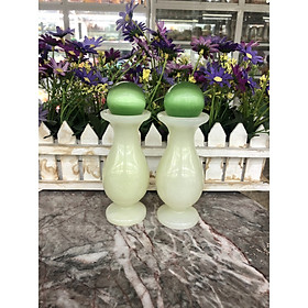 Chất liệu: Đá ngọc hoàng long Kích thước: Cao 11 cm và đường kính 8 cm Cao 16 cm và đường kính 7 cm