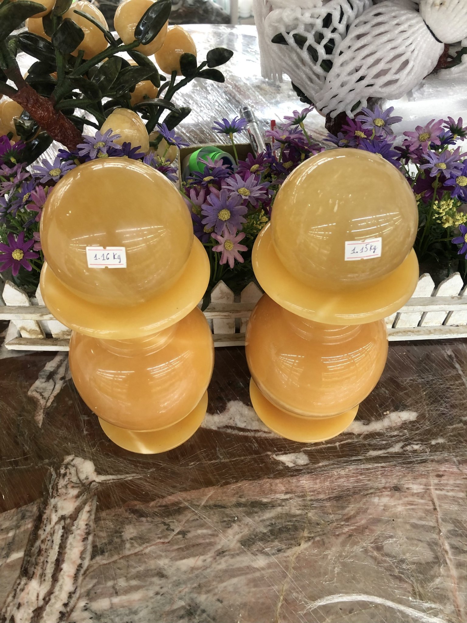 Chất liệu: Đá ngọc hoàng long Kích thước: Cao 11 cm và đường kính 8 cm Cao 16 cm và đường kính 7 cm