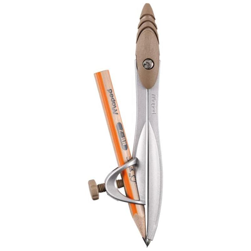 Compa Chì Gỗ Maped 199111 Với phần đầu ghim được làm từ kim loại, compa có thể được giữ vững trên bề măt giấy, không bị dịch chuyển. Đầu compa cũng nhỏ gọn để tránh