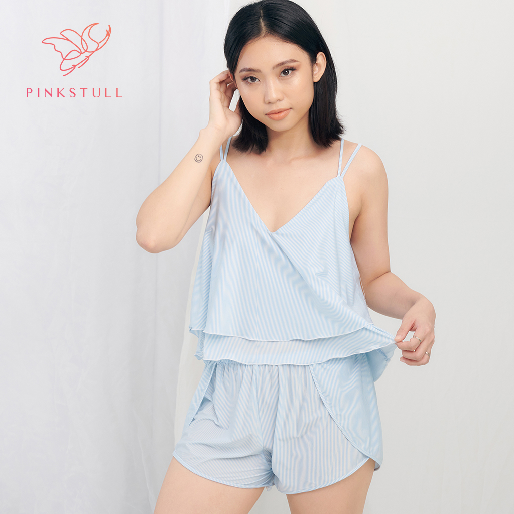 Đồ bộ mặc phi lụa cao cấp WANNABE BSS38 bộ sọt 2 dây cúp 2 lớp tạo độ phồng cúp ngực nữ tính trẻ trung năng động Đồ bộ mặc nhà phi lụa cao cấp