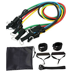 Bộ dây đàn hồi tập thể lực có 5 dây, mỗi dây có mức trọng lượng khác nhau, từ nhẹ tới nặng (8 lbs, 15 lbs, 20 lbs, 25 lbs, 30 lbs) có thể