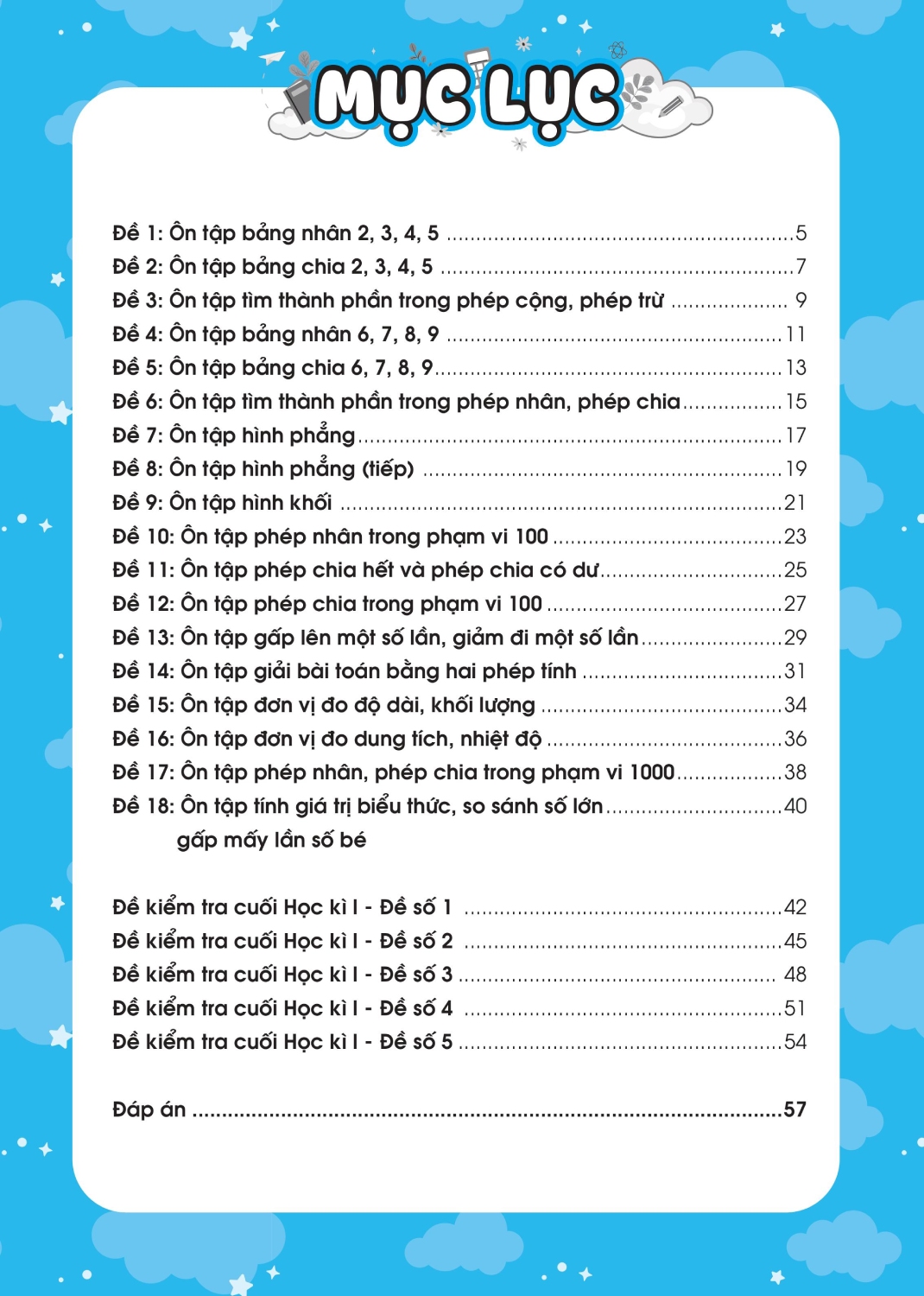 Phần đề ôn tập: Gồm 18 đề được chia theo các chủ điểm, hoặc chia thành các đề ôn tập theo sát chương trình học trên lớp theo giai đoạn.