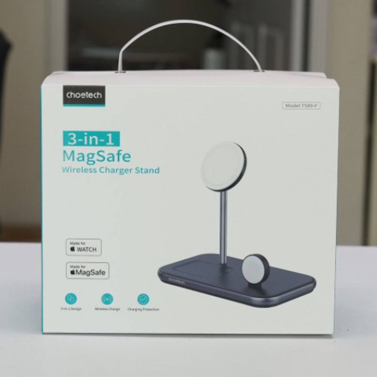 Giới thiệu Bộ đế sạc CHOETECH T589-F Mag-Safe 3 in 1 có chứng nhận MFI (Hàng chính hãng) - Thương hiệu: CHOETECH - Model: T589-F - Tính năng: Có Mag-safe, Được chứng nhận MFI - Công suất: 15w -