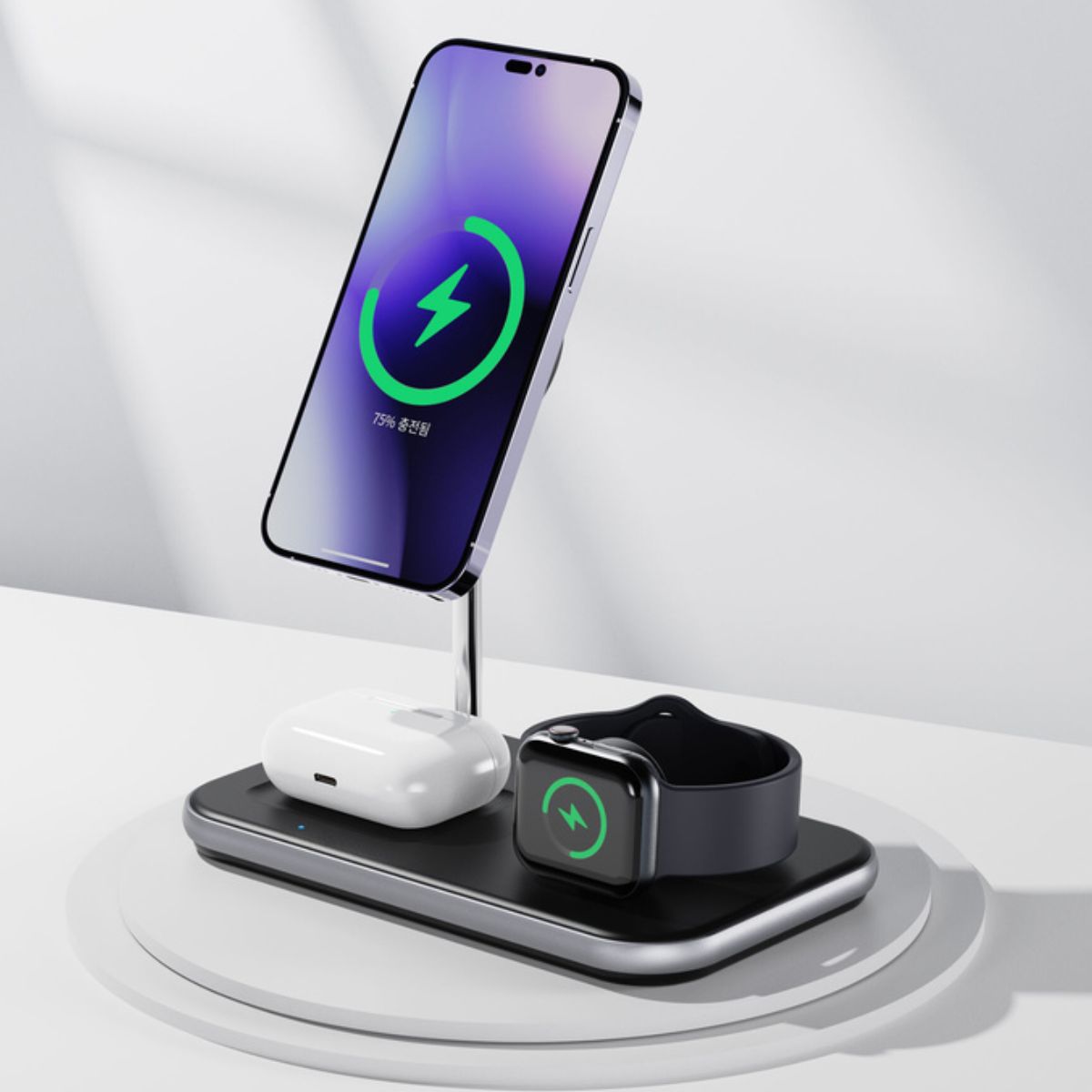 Lực hút nam châm tăng 20% so với các sản phẩm thông thường, giữ chặt thiết bị tương thích ngay cả khi di chuyển. Bạn có thể sạc ba thiết bị cùng lúc với một