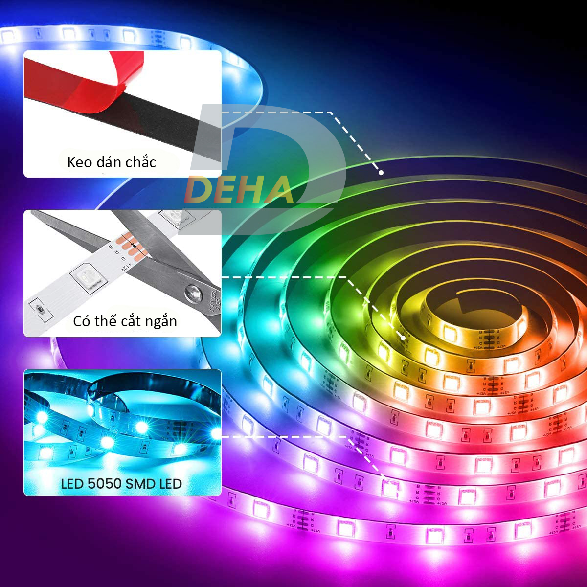 ✨Bộ đèn Led dây dán RGB đổi màu điều khiển từ xa chọn màu đứng yên, nhấp nháy strip light trang trí quay Tiktok dán tường, bàn máy tính, chống nước bền đẹp (Tùy chọn loại led, chiều dài dây)