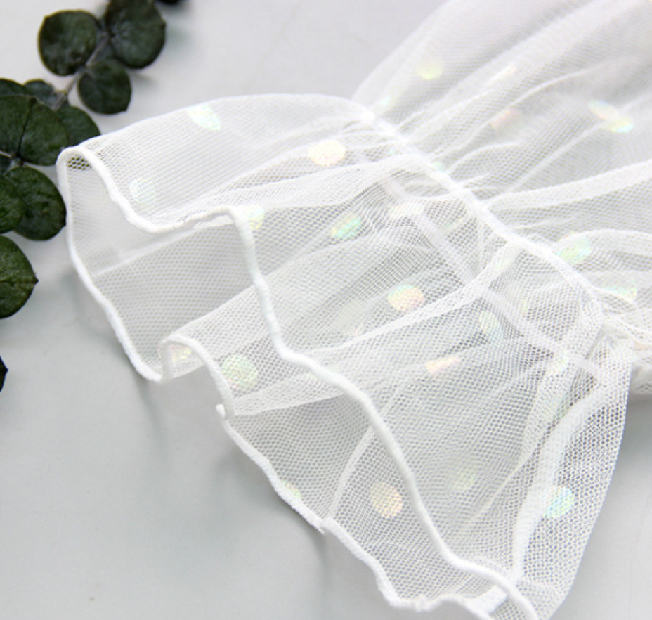 - Set gồm: áo ren trắng chấm bi khoác ngoài kèm bộ liền thân