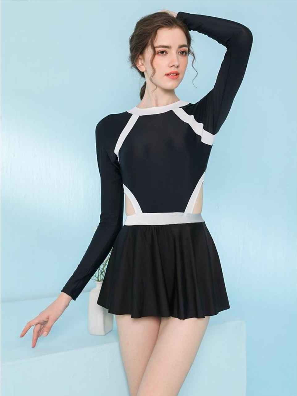 ✨Bộ đồ bơi bikini nữ kín đáo 1 mảnh đi tắm biển giấu bụng váy liền áo dài tay - B.42