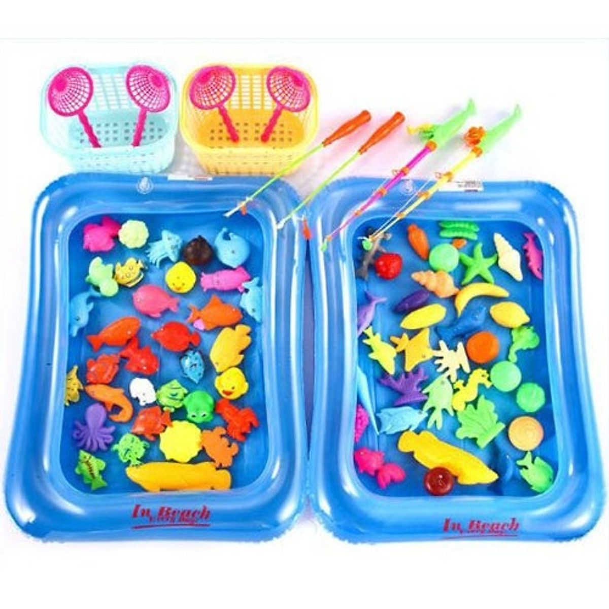 Bộ đồ chơi câu cá trẻ em kèm phao, rổ, vợt, cá, - Bể phao câu cá cho bé cao cấp loại 1, an toàn Bộ đồ chơi câu cá trẻ em gồm bể phao,