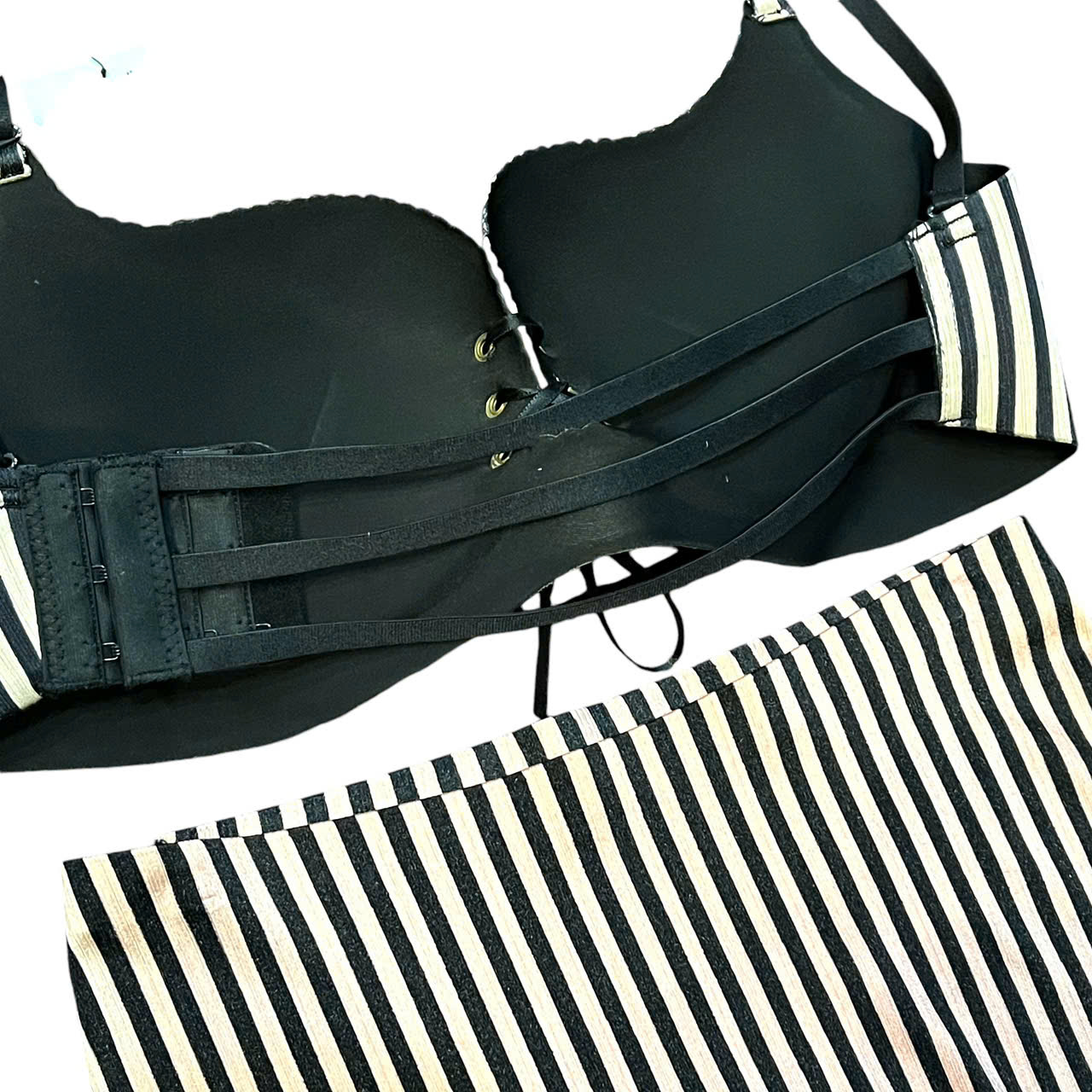 ✨Bộ đồ lót sọc có gọng mút dày 3cm dây rút nâng ngực gợi cảm quần nguyên mông