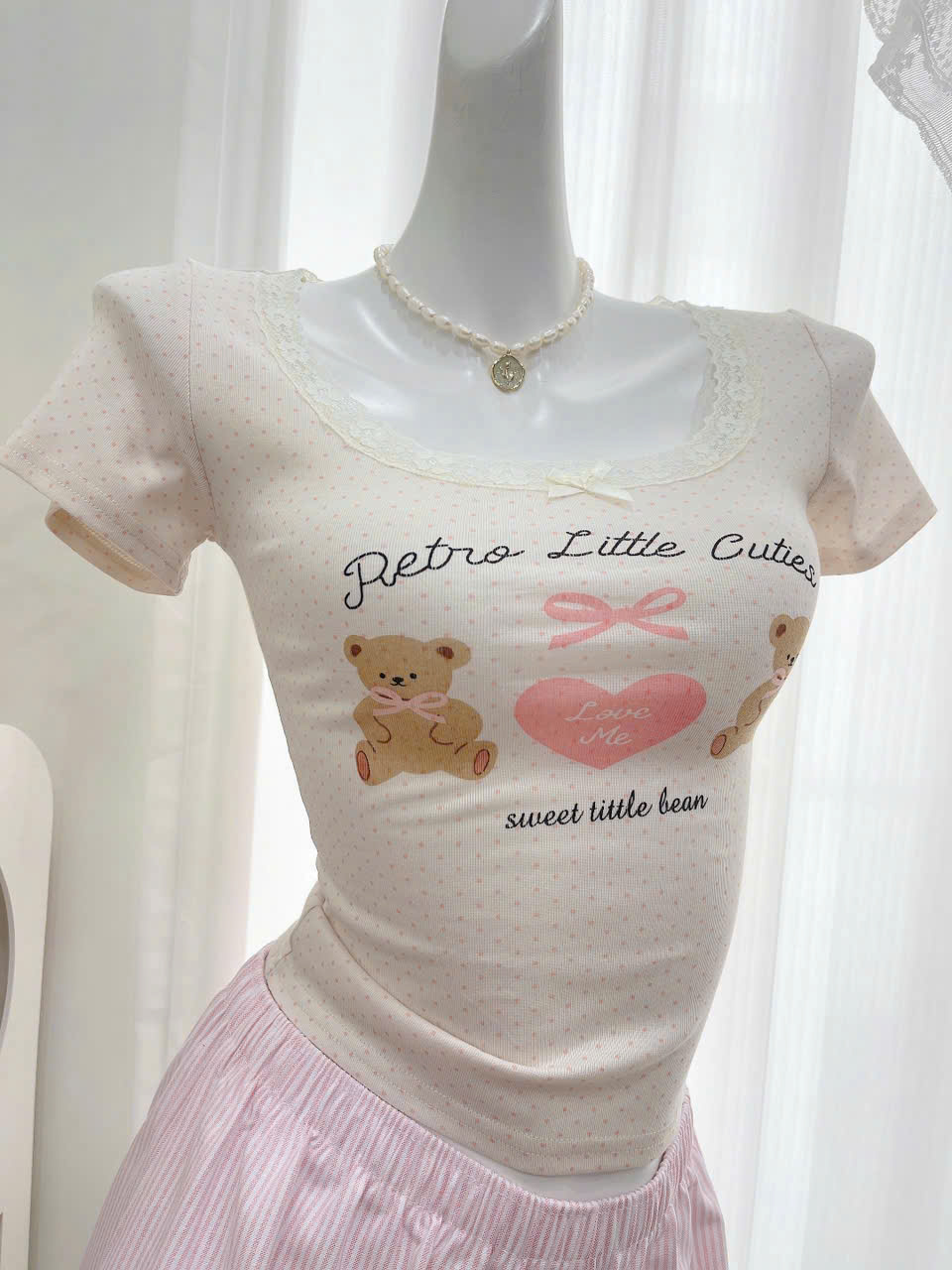 Bộ đồ ngủ B570 tay ngắn quần đùi áo cotton họa tiết gấu quần kateBộ đồ ngủ B570 tay ngắn quần đùi áo cotton họa tiết gấu quần kateBộ đồ ngủ B570 tay ngắn quần đùi áo cotton họa tiết gấu quần kate