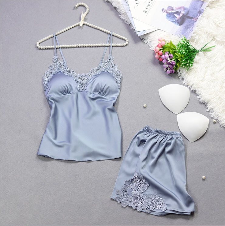 Bộ đồ ngủ gồm áo 2 dây và quần đùi, kiểu dáng thanh lịch mà gợi cảm tôn lên vóc dáng và mang đến vẻ đẹp cùng sự tự tin cho phái đẹp