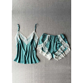 ✨Bộ Đồ Nữ Phi Lụa Quần Ngắn Viền Ren Trắng