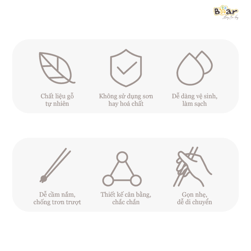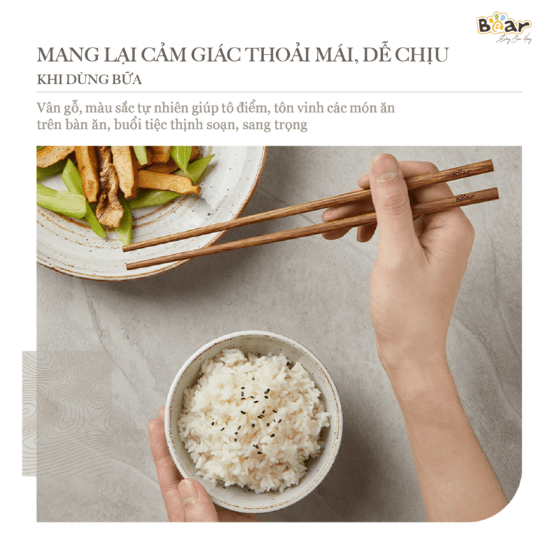 Chuôi đũa mạ Crôm chắc chắn – thiết kế mới 2025 cực sang, in logo hãng độc quyền. Chất liệu: Sợi thủy tinh kháng khuẩn, chịu nhiệt tới 200°C. An toàn tuyệt đối với máy