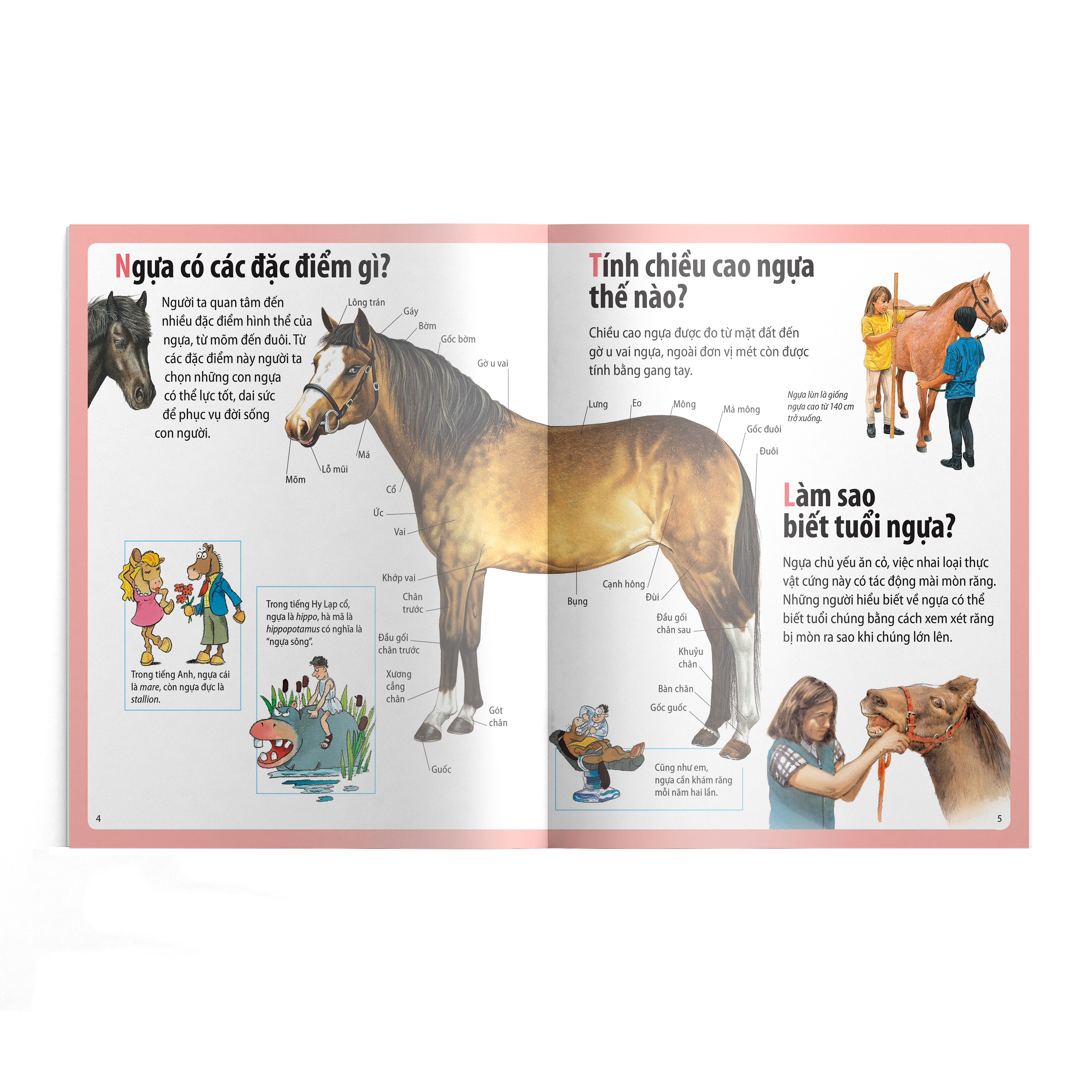 Nội dung giới thiệu: Với hình ảnh bắt mắt cùng một kho kiến thức lí thú, bộ sách Em muốn biết vì sao đã hấp dẫn hàng ngàn độc giả nhí trên toàn thế giới. Cuốn sách Em muốn biết vì sao ngỗng trời bay xa và những câu hỏi khác về chim chóc cung cấp cho em những hiểu biết phong phú về chim chóc: chim cắt tốc độ, chim ruồi bé nhỏ, chim cánh cụt, cùng nhiều điều bổ ích khác. Em muốn biết những gì nào? Qua bộ sách, các em sẽ tìm thấy câu trả lời thông minh, hóm hỉnh cho tất cả những câu hỏi “cắc cớ” về thế giới xung quanh, kèm theo nhiều hình minh họa hài hước, sinh động. Với 34 đầu sách bao quát nhiều chủ đề khác nhau, bộ sách chứa đựng vô vàn những ngạc nhiên thú vị cho các em tha hồ khám phá. 17. Em muốn biết vì sao Ngựa có móng và những câu hỏi khác về ngựa Tác giả: Jackie Gaff Dịch giả: Hồng Vỹ Kích thước: 23 x 28 cm Số trang: 32 Hình thức: bìa mềm Sách do Công ty Cổ phần Văn hóa Đông A và NXB Dân trí liên kết ấn hành