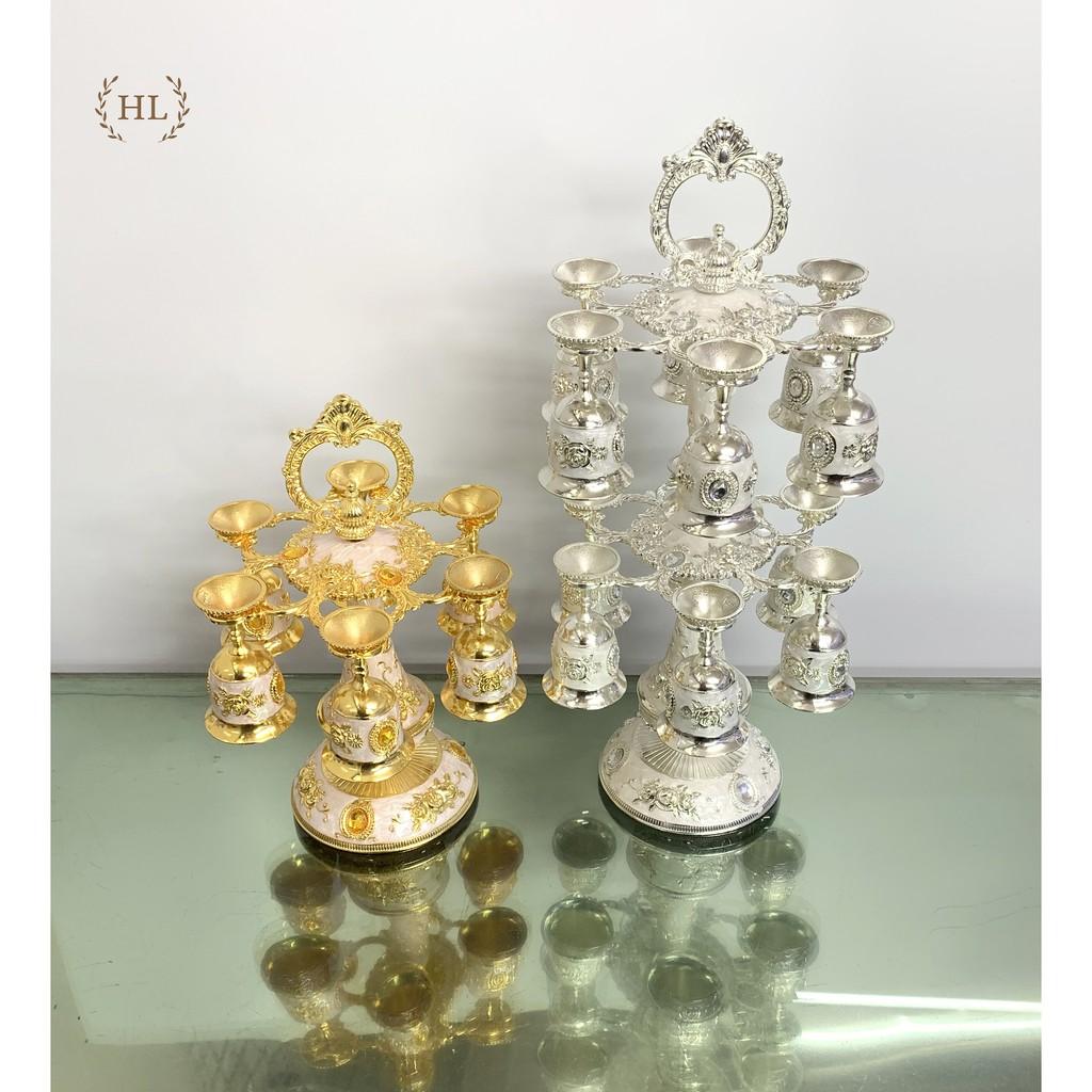 Bộ treo ly đồng khảm Bao gồm: Bộ 6 ly hoặc bộ 12 ly vàng hoặc trắng Chất liệu: Hợp kim đồng