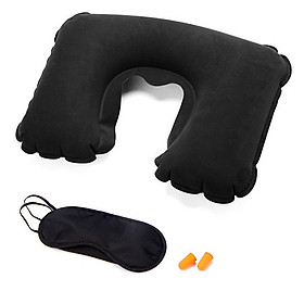 Bộ gối hơi, bịt mắt ngủ, bịt tai giảm ồn 3 trong 1, giấc ngủ ngon giấc ngủ sâu ngủ say hơn. Gối hơi du lịch, gối tựa cổ đa năng tự bơm, Tựa Đầu