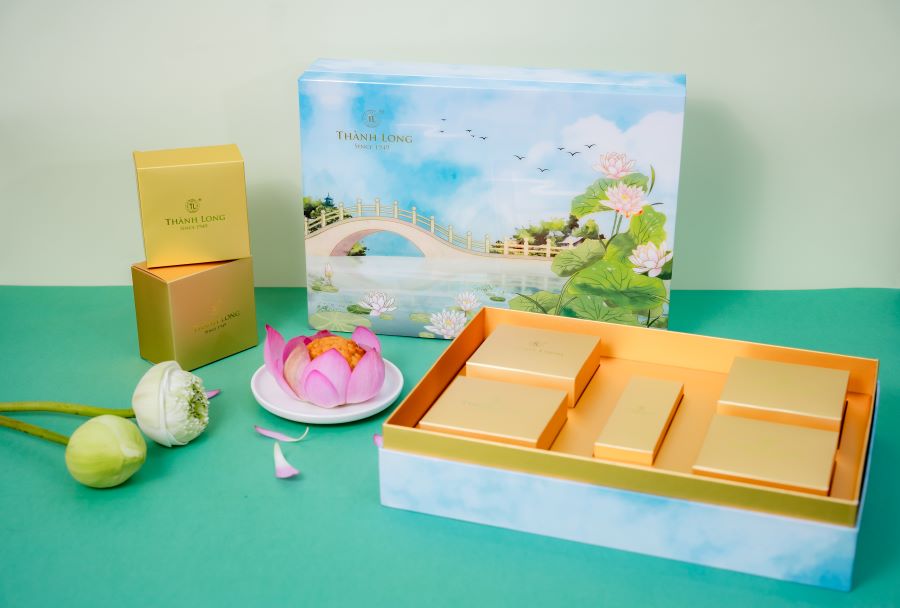 Bộ hộp Bánh trung thu Trường Phúc - Thành Long gồm 4 bánh: Nhân thập cẩm vi cá hải sản ( 220g ) Nhân hạt sen macca ( 220g ) Nhân trà xanh hạnh nhân