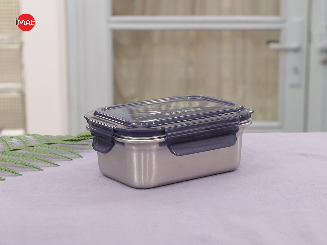 Bộ 4 hộp chữ nhật inox, nắp nhựa khoá 4 cạnh với dung tích: 250ml, 650ml, 1200ml, 2100ml. Sử dụng công nghệ mới kết hợp với inox 304 để tạo ra hộp đựng thực phẩm inox dùng được trong lò vi sóng. Sử dụng trong lò nướng, tủ lạnh, vi sóng hoặc ngăn đông. Hộp nhẹ và kín nước, kín hơi nên dễ mang theo. Dùng được trong máy rửa chén.