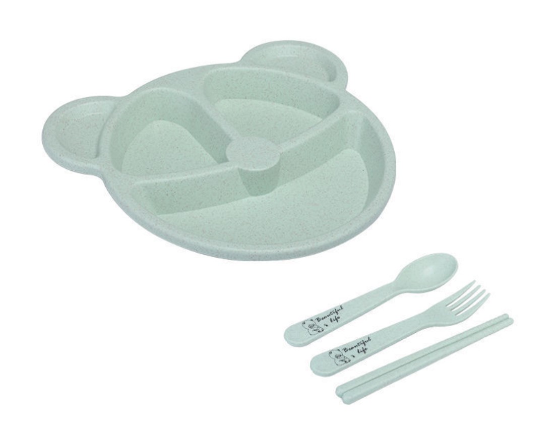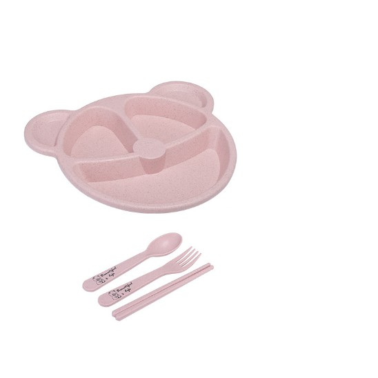Khay ăn dặm 3 ngăn 4 món ( muỗng , đũa , nỉa )