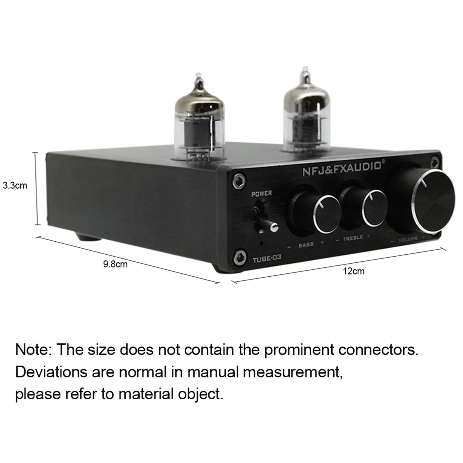 - Using high-quality aluminum alloy housing with gold-plated connectors, it's durable and high-performance. Specifications: Brand Name: FX-AUDIO Model Number: TUBE-03 Tube Model: 6K4 Frequency Response: 1.5(20Hz-20KHz) Audio Input Interface: RCA Audio Output Interface: RCA RCA Output: 0.9Vrms SNR: 100dB THD: 0.03% Treble Adjustable Range: 6dB Bass Adjustable Range: 10dB Input Voltage: AC 100-240V, 50/60Hz; DC 12V/1A Color: Black, Silver (Optional) Main Item Size: approx. 12 9.8 3.3cm / 4.72 3.85 1.29in Main Item Weight: approx. 318g / 11.21oz Package Size: approx. 22 21 7cm / 8.66 8.26 2.75in Package Weight: approx. 566g / 19.96oz Package List: 1 Preamplifier 1 Power Adapter 1 * User Manual (English Chinese)